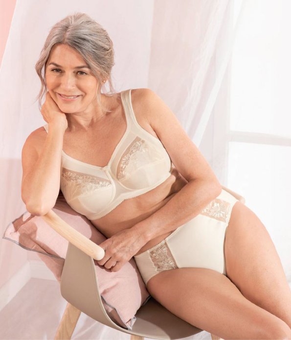 Спеціальний бюстгальтер Safina з м'якою чашкою відрізняється ідеальною посадкою по фігурі, особливо для власниць великих розмірів. Це базова модель спеціального бюстгальтера. Поєднання глянцевої тканини верху і прозорого тюлю з вишивкою надає цій моделі особливий шарм.