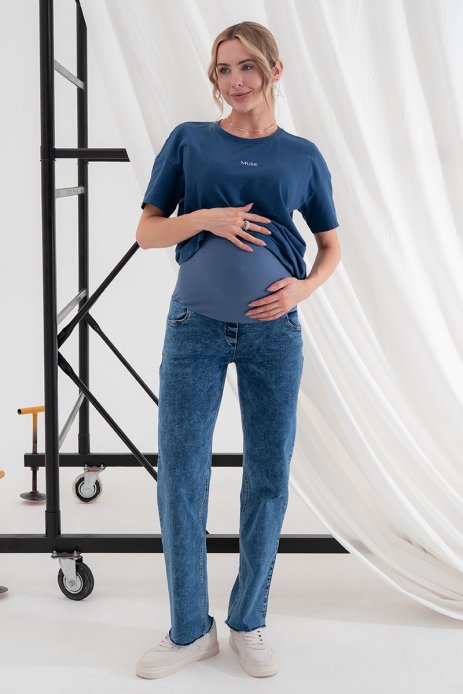 Стильні прямі джинси для вагітних із високою спинкою та непідшитим низом.