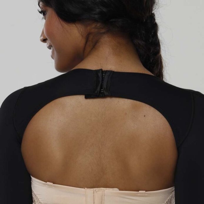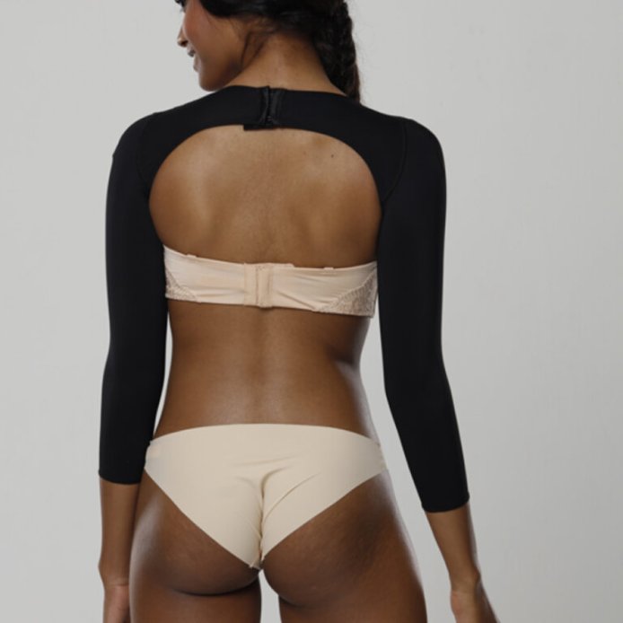 Рукава Aurafix LC-1910 утримують руки в правильному положенні за допомогою прозорої силіконової стрічки спереду і застібок на гачках з боку спини. Компресія усуває набряклість, покращує кровотік і стимулює лімфодренажні діяльність.