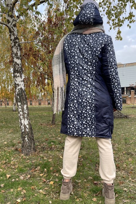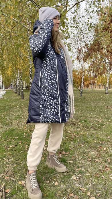 Куртка зимова 2в1 Марго двостороння для вагітних синій/зірочки на синьому 20.003