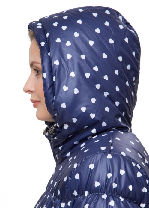 Встретим холода с модной курткой! Эффектный принт «сердечки» и простежка смотрится невероятно оригинально. Воротник-стойка и капюшон - эти детали станут настоящим щитом от непогоды!
