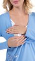 Універсальний лонгслів для майбутніх і годуючих мам! Виконаний з легкого і приємного до тіла бавовняного трикотажу з симпатичним квітковим орнаментом по низу вироби, на тлі небесно-блакитного відтінку. Фасон трохи вільний, рукава довгі, низ підкреслять гумкою-рібаной. V-образна горловина з запахом на грудях витончено підкреслює красу бюста. За допомогою "двошарові" (внутрішній шар з бічними прорізами) мамі буде легко і просто погодувати малюка в будь-якому місці і в будь-який час. Таку модель можна використовувати "на кожен день" в прохолодну погоду, поєднуючи з різноманітністю брюк, шортів і спідниць.