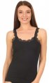 Лаконічний дизайн і вузький крій перетворюють її в ідеальну базову модель для створення різних образів. Бретелі акцентують увагу на витонченій лінії плечей, а мереживна вставка вздовж вирізу підкреслює ефектне декольте. Приємний для тіла матеріал з високим вмістом бавовни забезпечує оптимальний комфорт на весь день. Завдяки ніжній структурі тканини модель м'яко і комфортно сідає по фігурі. Від такої майки не відмовиться жодна модниця!
