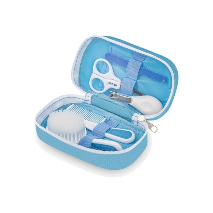 Манікюрний набір для догляду за дитиною у зручній та практичній косметичці. Ножиці (з тонкими металевими лезами та закругленими краями) та кусачки допоможуть вам безпечно та надійно обрізати маленькі нігті, а пилка легко усуне нерівності нігтя, оберігши малюка від подряпин. М'яка щітка і гребінець з ковзкою ручкою дозволять вам доглядати за головкою малюка. Щоб мінімізувати ризик несподіваного руху дитини, рекомендується підстригати нігті під час сну.
