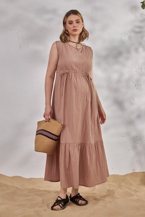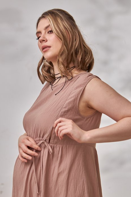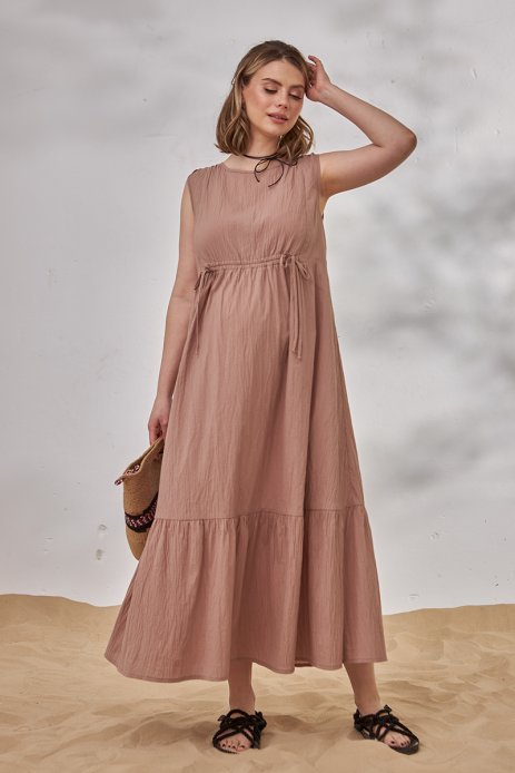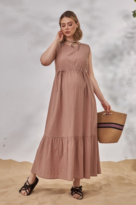 Довге плаття для вагітних та годуючих із жатої тканини.