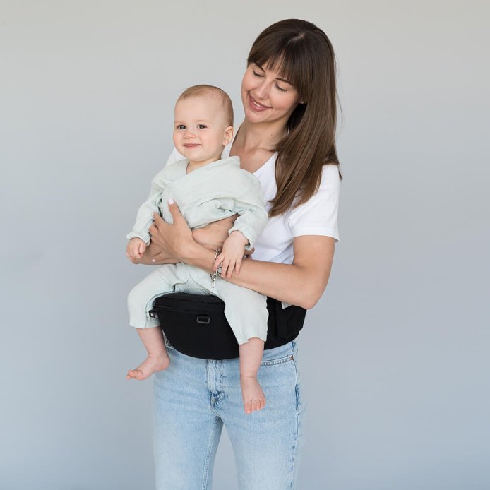 Тепер для знаттєлюбних діток, що підросли, ви можете без побоювань і шкоди для тазостегнових суглобів використовувати Хіпсіт Love & Carry - альтернативна, зручна, дитяча переноска, призначена для малюків, які вже навчилися самостійно сидіти. Хіпсіт складається з ергономічного сидіння, яке кріпиться до талії дорослого широким поясом на липучці і додатково фіксується фастексом. Сидіння хіпсіта має оптимальний кут 30 °, що дозволяє зручно розмістити дитину. Вставка на сидіння, запобігає зісковзуванню.