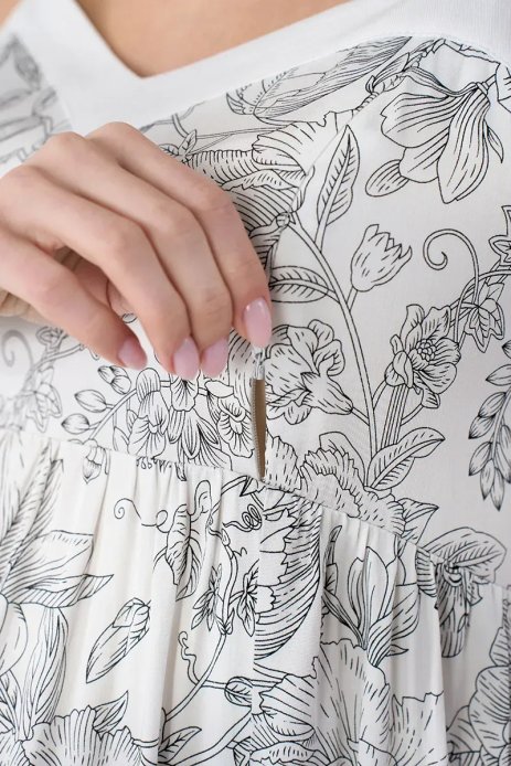 Сарафан Amelie для вагітних і годуючих молочний з чорним принтом квіти SF-26.061