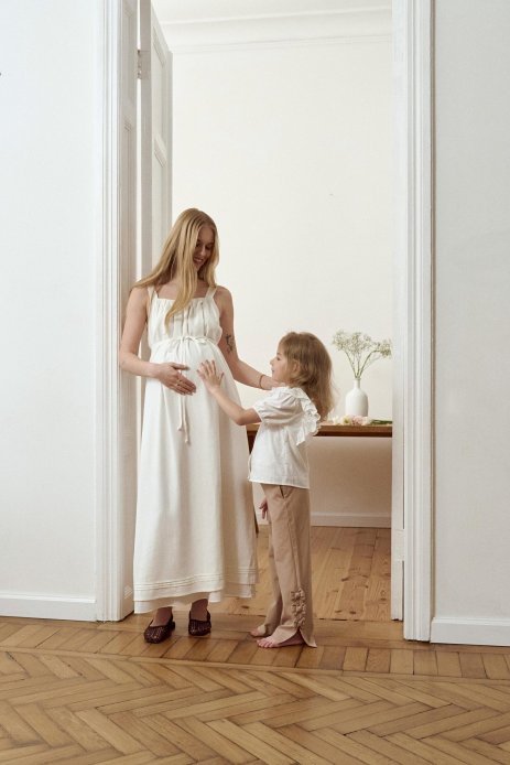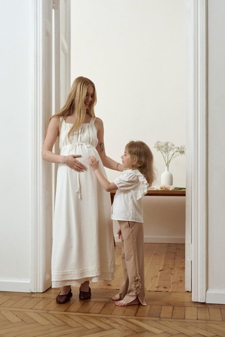 Цей сарафан з натурального льону — втілення комфорту, жіночності та практичності, створене спеціально для майбутніх і годуючих мам. Його продуманий крій дозволяє насолоджуватися свободою рухів і виглядати стильно на будь-якому етапі материнства.