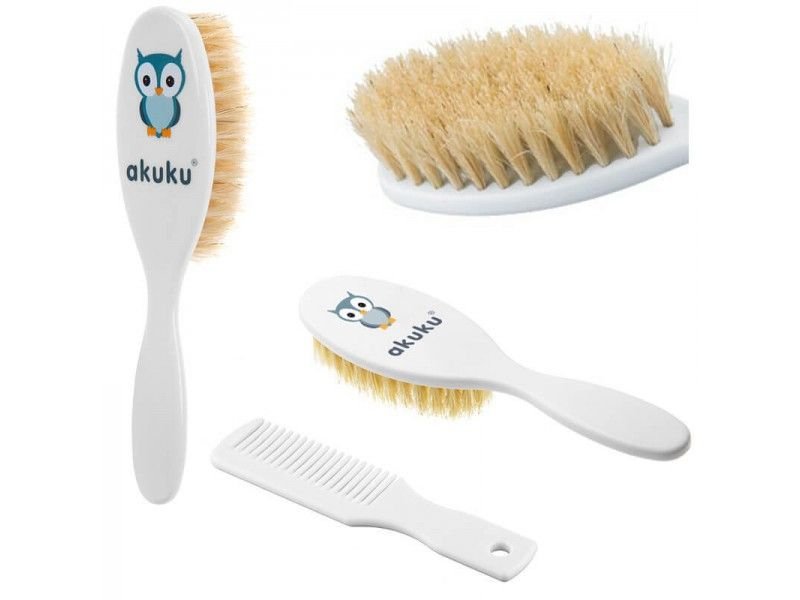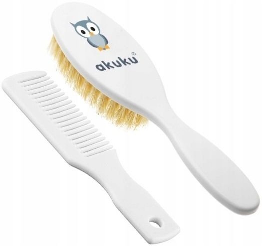 Аксесуари виготовлені із безпечних матеріалів без потенційно шкідливих компонентів. Щітка та гребінець Akuku мають лаконічний дизайн із зображенням милої мультяшної сови.