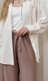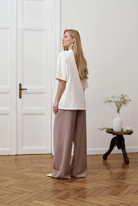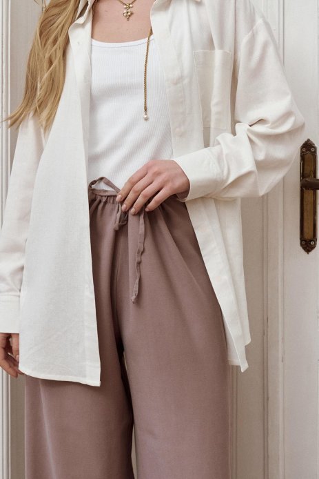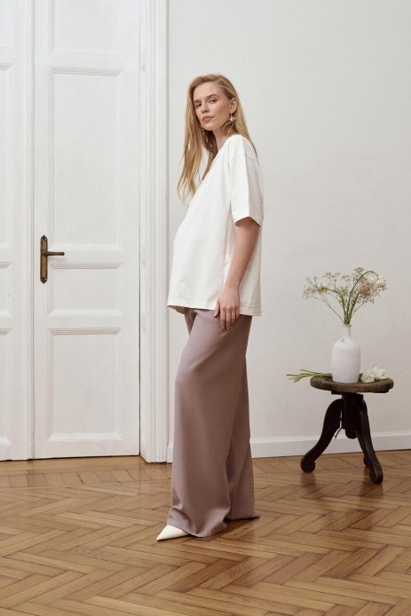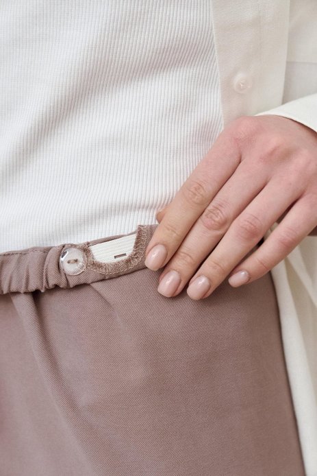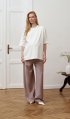 Штани палаццо створені для максимального комфорту майбутніх та молодих мам. Натуральний тенсел — це дихаючий, гіпоалергенний матеріал з деревини евкаліпту, який підходить навіть для дуже чутливої шкіри. Він має антибактеріальні властивості, регулює температуру тіла та зберігає відчуття свіжості.