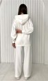 Костюм створений спеціально для майбутніх та годуючих мам. Виготовлений з м'якої, дихаючої тканини, яка забезпечує максимальний комфорт під час носіння, трикотаж м'яко облягає фігуру, та не обмежує жодних рухів. Просторий крій худі і брюк дозволяє комфортно носити костюм на всіх етапах вагітності, та після народження дитини. Костюм стане в нагоді для мам, які годують, завдяки зручними прихованими блискавками.