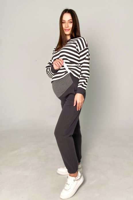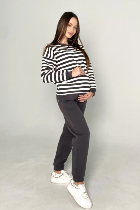 Спортивний костюм для вагітних і годуючих фліс смужка графіт 2357(2315) 1142