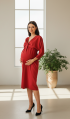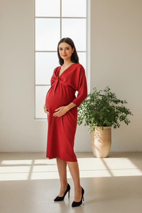 Розкішна сукня для вагітних жінок. Напівприлеглий силует. Вільний крій рукавів. Глибокий виріз горловини декорований драпіруванням з кільцями. М'які промені складок від драпірування розходяться в низ, утворюючи додатковий обсяг для животика. Цю модель Ви із задоволенням продовжите носити і після періоду вагітності. Розбавте стильною моделлю Ваш образ в магазині Mamacity!
