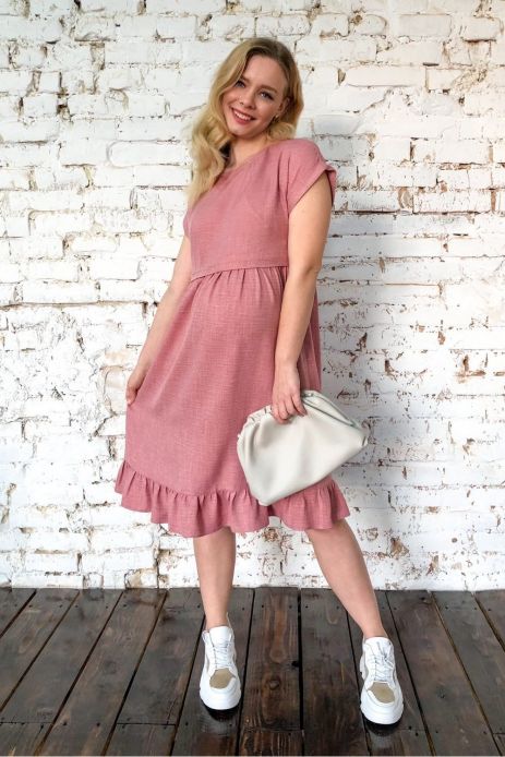 Стильна сукня для вагітних і годуючих - стане відмінною базою Вашого образу! Виріб виконаний з віскозної тканини. Трохи розкльошений крій моделі дуже зручний для зростання животика і не сковує рухи. Модель має полуоблегающій ліф з круглим вирізом і короткі рукава, широку оборку по низу. Секрет годування: потаємні блискавки, непомітно і дуже зручно. Сукня підходить для формування повсякденного і офісного гардероба, і дозволить створювати Вам максимально жіночний образ. Такий виріб відмінно римується з жакетами або кардіганами. Нехай Ваші образи який будуть позбавлені елегантності! Розбавте стильною моделлю Ваш образ в магазині Mamacity!