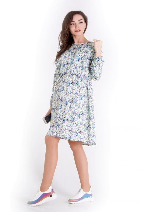 Романтична сукня для вагітності і годування в квітковий принт. Ніжна забарвлення і рюші додадуть образу легкості, тканина - щільний штапель. Таке плаття можна одягти з будь-якого приводу: в прохолодну погоду з легким пальто, курткою з грубими черевиками або трендовими чобітьми, в теплі дні з сандалями і солом'яним капелюшком. Після вагітності можна носити як сукню вільного крою, в рельєфних швах заховані потаємні блискавки для годування малюка. Розбавте стильною моделлю Ваш образ в магазині Mamacity!