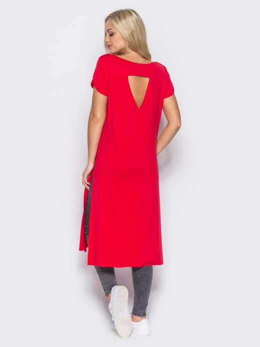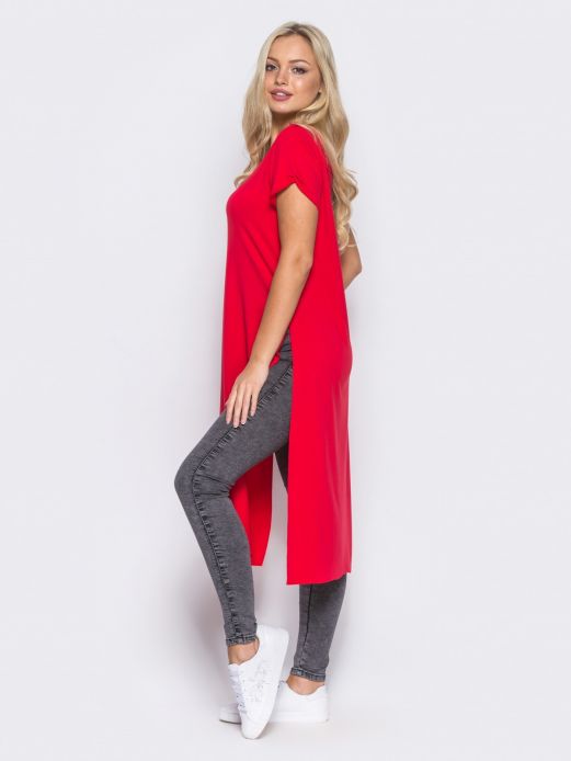Стильна туніка користується популярністю у модниць завдяки простоті, практичності, і в той же час жіночності. Виконана з шовковистого віскозного трикотажу. Оригінальний фасон вільного силуету виглядає ефектно. Модель з коротким рукавом, з необробленим краями. На спинці фігурний виріз. З боків туніка доповнена розрізами, без застібок. Виріб в комплекті з брюками або лосинами являє собою універсальний предмет гардеробу, який можна використовувати для створення практично будь-якого оригінального образу.Розбавте яскравою моделлю Ваш звичайний спосіб в магазині Mamacity!