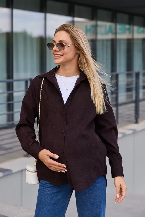 Вельветова сорочка Varna для вагітних шоколадний LB09VR138