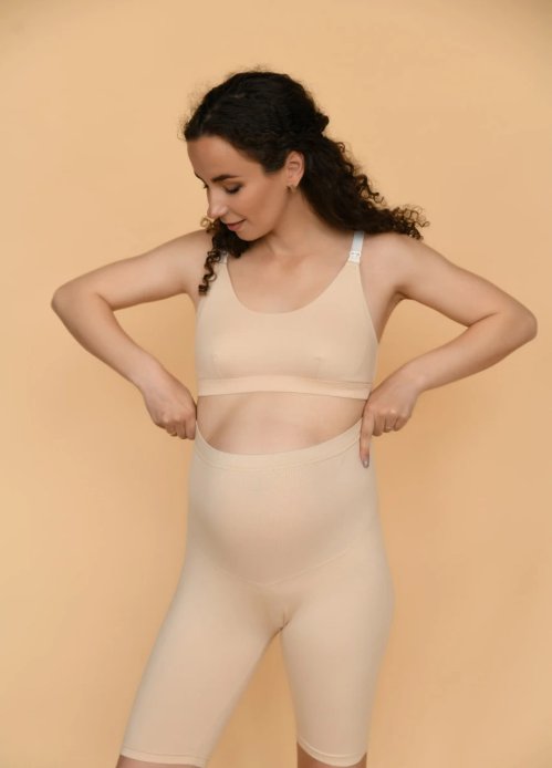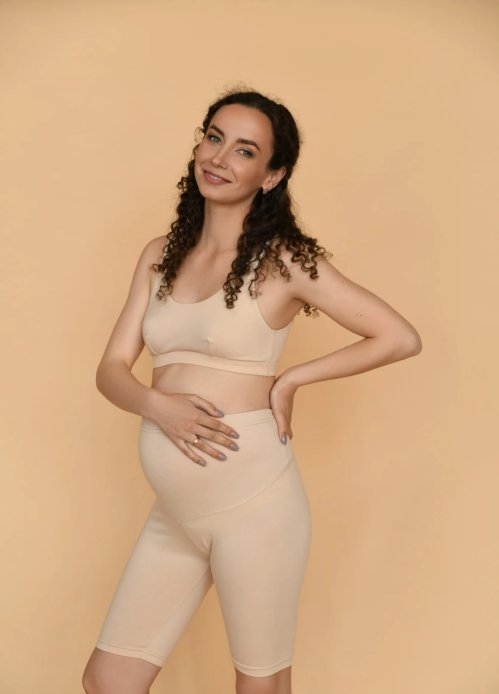 Високий пояс бандажного типу: Шорти оснащені високим поясом, який надійно підтримує животик. Пояс регулюється, це дає змогу налаштувати його розмір залежно від терміну вагітності, він забезпечує оптимальний посадку та комфорт.