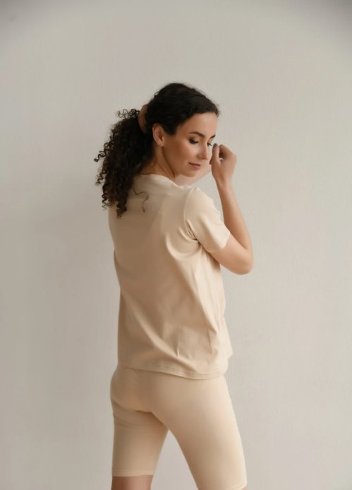 Приємний матеріал: Шорти виготовлені з м'якого натурального матеріалу з додаванням еластичного волокна. Він подарує комфортну посадку та не викликатиме дискомфорту під час прогулянок. Тканина пристосовується до змін тіла під час вагітності та дозволяє шкірі дихати.