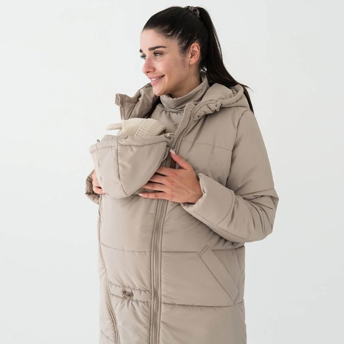 Тепла та функціональна слінгокуртка Love & Carry має три варіанти використання: носіть її під час вагітності завдяки окремій вставці, користуйтесь нею разом з малюком у слінгу чи ерго-рюкзаку, а також не забувайте, що пуховик можна носити і без вставок – він надзвичайно легкий та теплий.